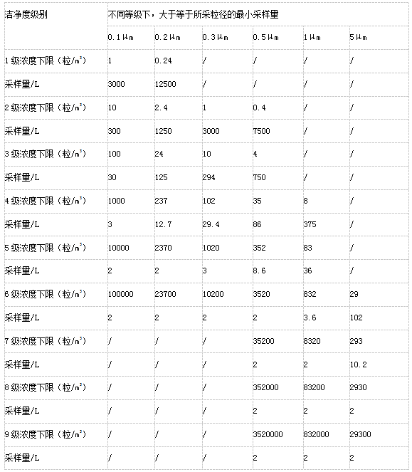 0.1μm至5μm微粒的檢測應(yīng)符合以下要求: